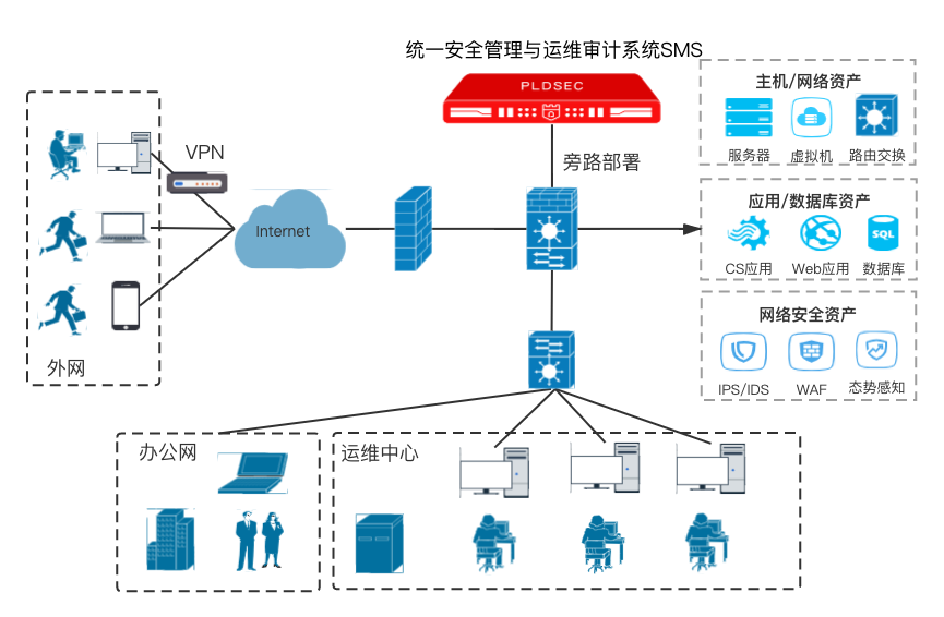 帕拉迪統(tǒng)一安全管理與運(yùn)維審計(jì)系統(tǒng)(簡(jiǎn)稱:SMS)結(jié)合ITIL、ITSM、IT內(nèi)控、SOX法案COBIT法規(guī)、信息安全等級(jí)保護(hù)及IT運(yùn)維管理要求,融合運(yùn)維管理和運(yùn)維安全的特性,切斷終端對(duì)服務(wù)器、數(shù)據(jù)庫(kù)系統(tǒng)及網(wǎng)絡(luò)資源的直接訪問,采用代理轉(zhuǎn)發(fā)的方式接管終端對(duì)網(wǎng)絡(luò)資源的直接訪問,集中實(shí)現(xiàn)用戶的身份認(rèn)證、授權(quán)管理、訪問控制和操作審計(jì)。
