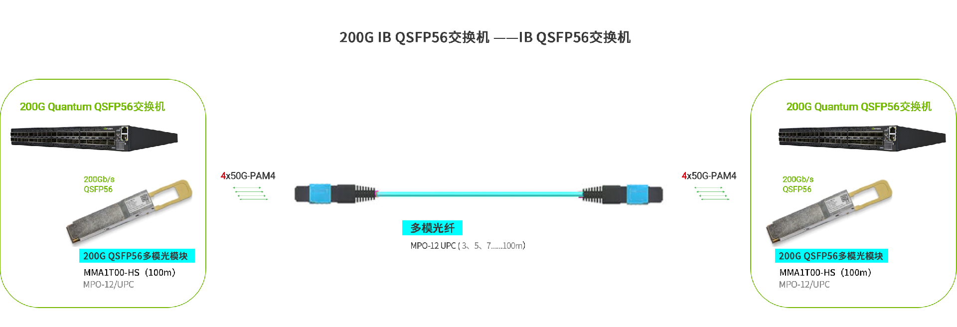 NVIDIA/Mellanox MMA1T00-HS 熱插拔 QSFP56 光模塊可通過 MPO 連接器使用 850nm 波長的多模光纖 (MMF) 實現高達 100m 的傳輸距離,支持 200Gb/s InfiniBand HDR 系統或 200G 以太網,主要用于 QM8700/QM8790交換機以及200G ConnectX-6 QSFP56 網卡。